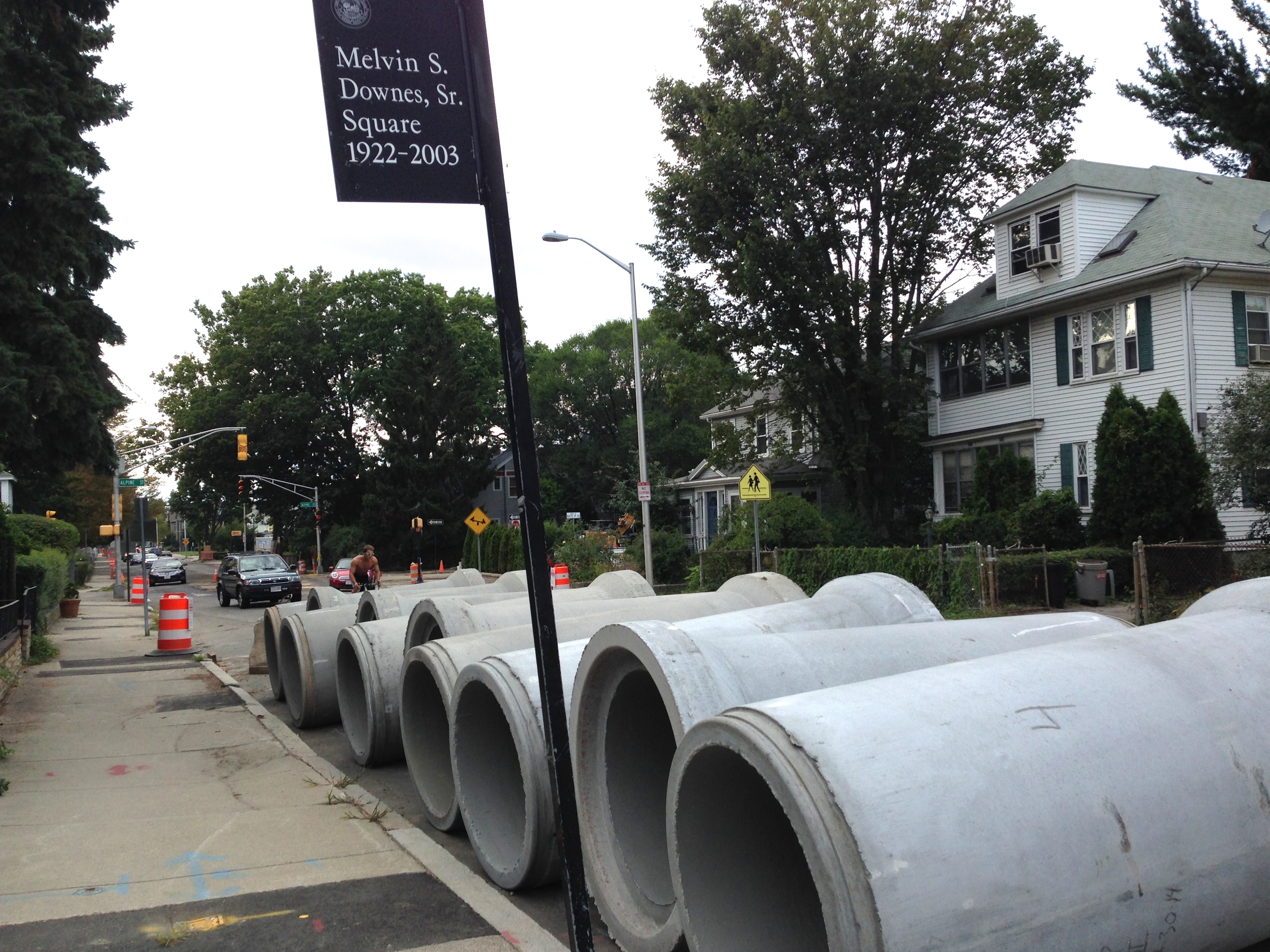 The problems did not end there, however. In 1997 toxic “hot spots” were detected in the school’s playing fields, and since 1999 the site has carried a legally binding Activity and Use Limitation (AUL) that prohibits “any use as a residence and/or activities consistent with residential use” and bars any activity that “involves disturbing the land more than 3 feet below ground without the supervision of an outside analyst.” Small comfort, when you consider that children spend about a third of their waking hours at school. Or that the section of Vassal Lane that Tobin faces was deeply excavated to lay new sewer pipes and storm water drains, and the front schoolyard, street and sidewalks around the school have been under construction for months for the sewer separation project.