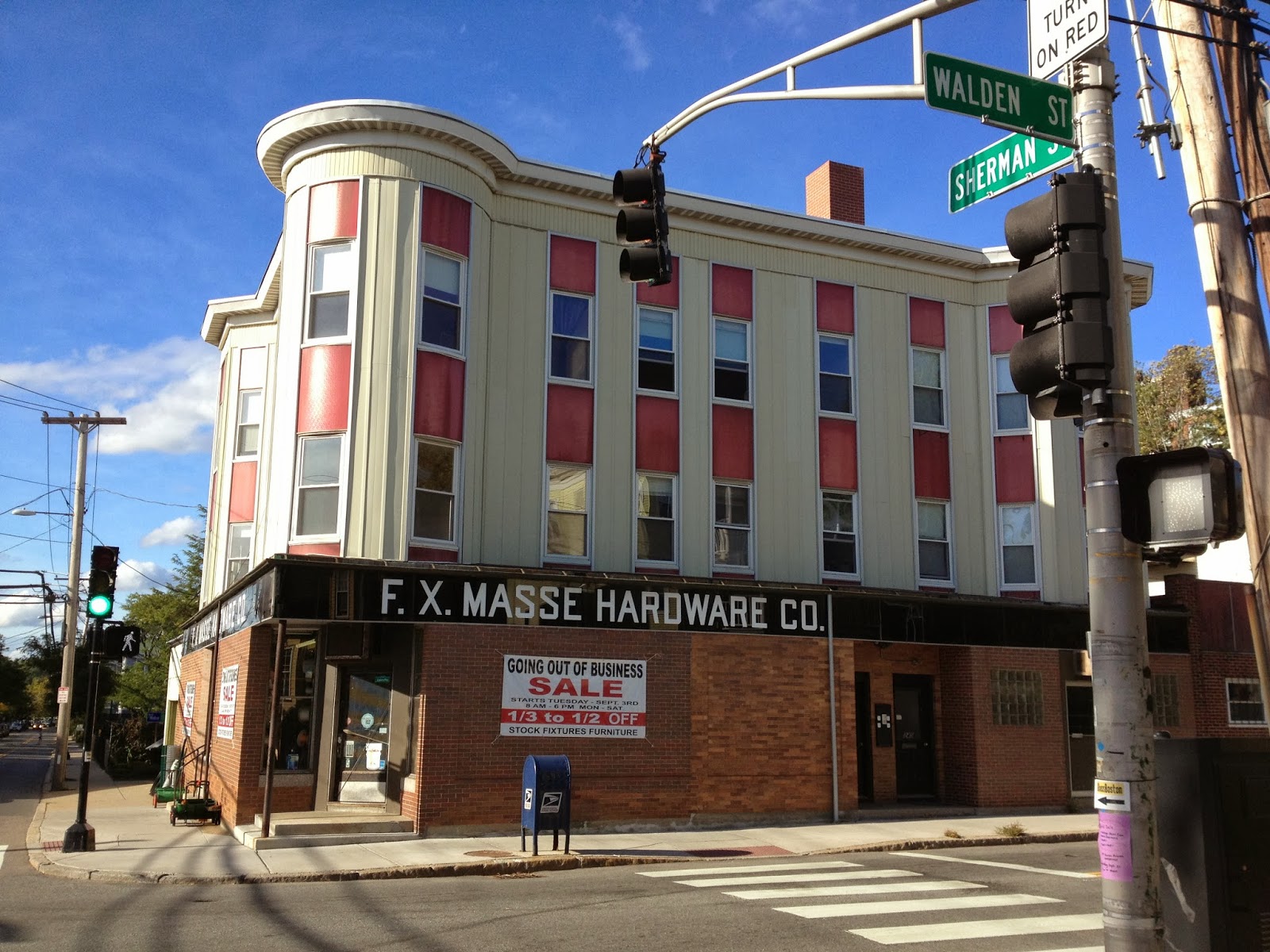 Many locals mourned the loss of F.X. Masse Hardware Co. when the family-owned store, a neighborhood institution since 1888, closed in October 2013. Now, just a year later, the goodwill the Masse family accrued over 125 years in the trade is being tested with plans to develop their two corner lots at the busy intersection of Walden and Sherman Street into a total of 32 apartments. Area residents, many of them loyal Masse’s customers, are upset about third-generation owner David Masse’s plan to convert the former store into a 6-unit building, and to construct a new 26-unit building on the parking lot across the street.